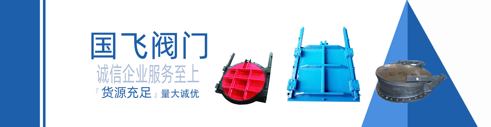 浙江國飛閥門科技有限公司坐落于擁有中國閥門之都”美稱的永嘉甌北,是集中開發(fā)、設(shè)計、制造、銷售為一體的科技型企業(yè),現(xiàn)主要生產(chǎn)的產(chǎn)品有污水處理閥,不銹鋼渠道閘門、不銹鋼拍門、錐形閥、鑄鐵鑲銅閘門、電動通風蝶閥、泄爆閥,配水閘閥,套套閥,浮筒閥,插板閥,電磁閥,燃氣緊急切斷閥,不銹鋼電磁閥,高爐煤氣閥、電力閥、石化閥配套和特種非標閥等10大類;產(chǎn)品廣泛應(yīng)用于石油、化工、冶金、建材、市政環(huán)保、制藥、電力等行業(yè)。